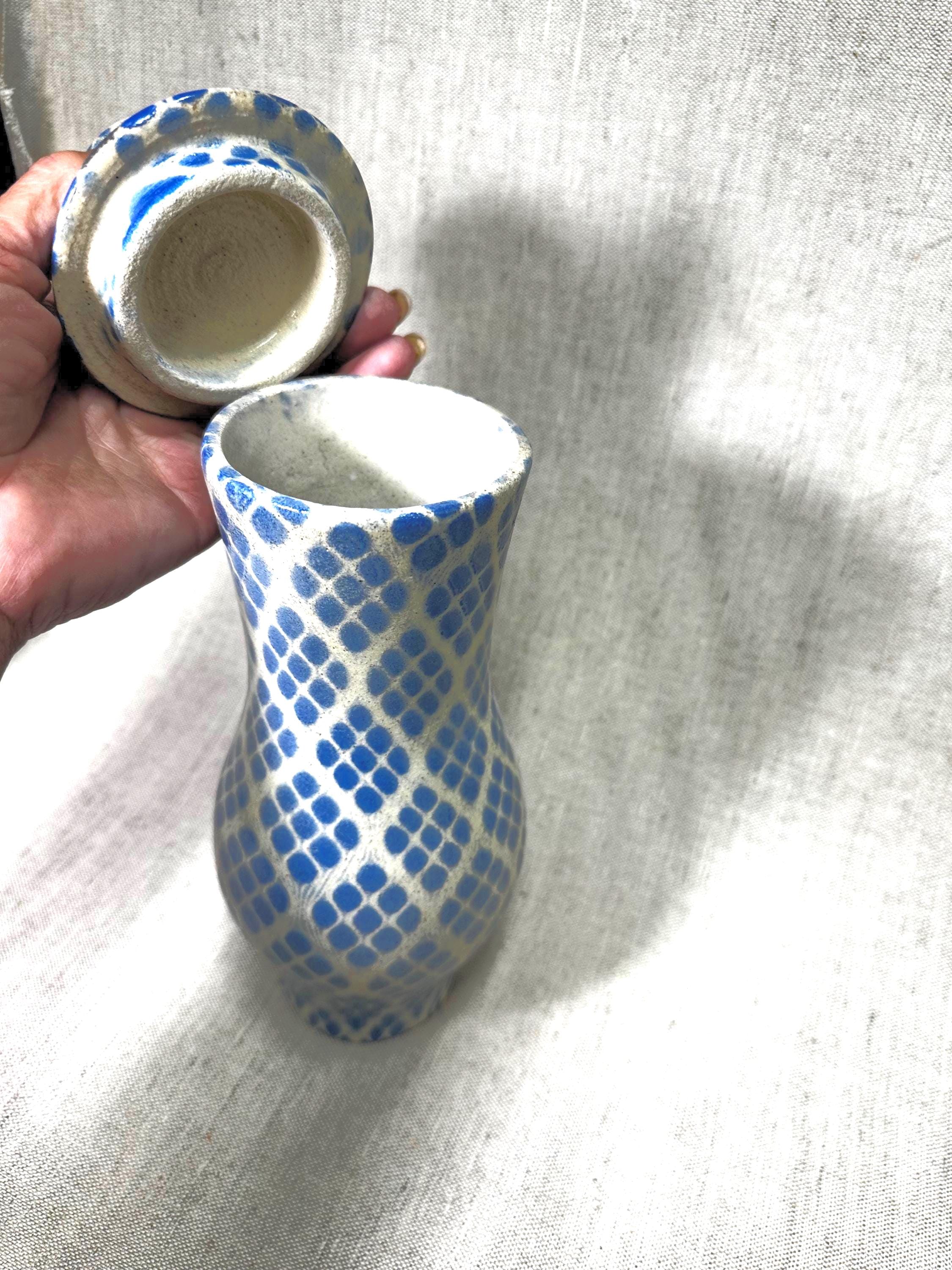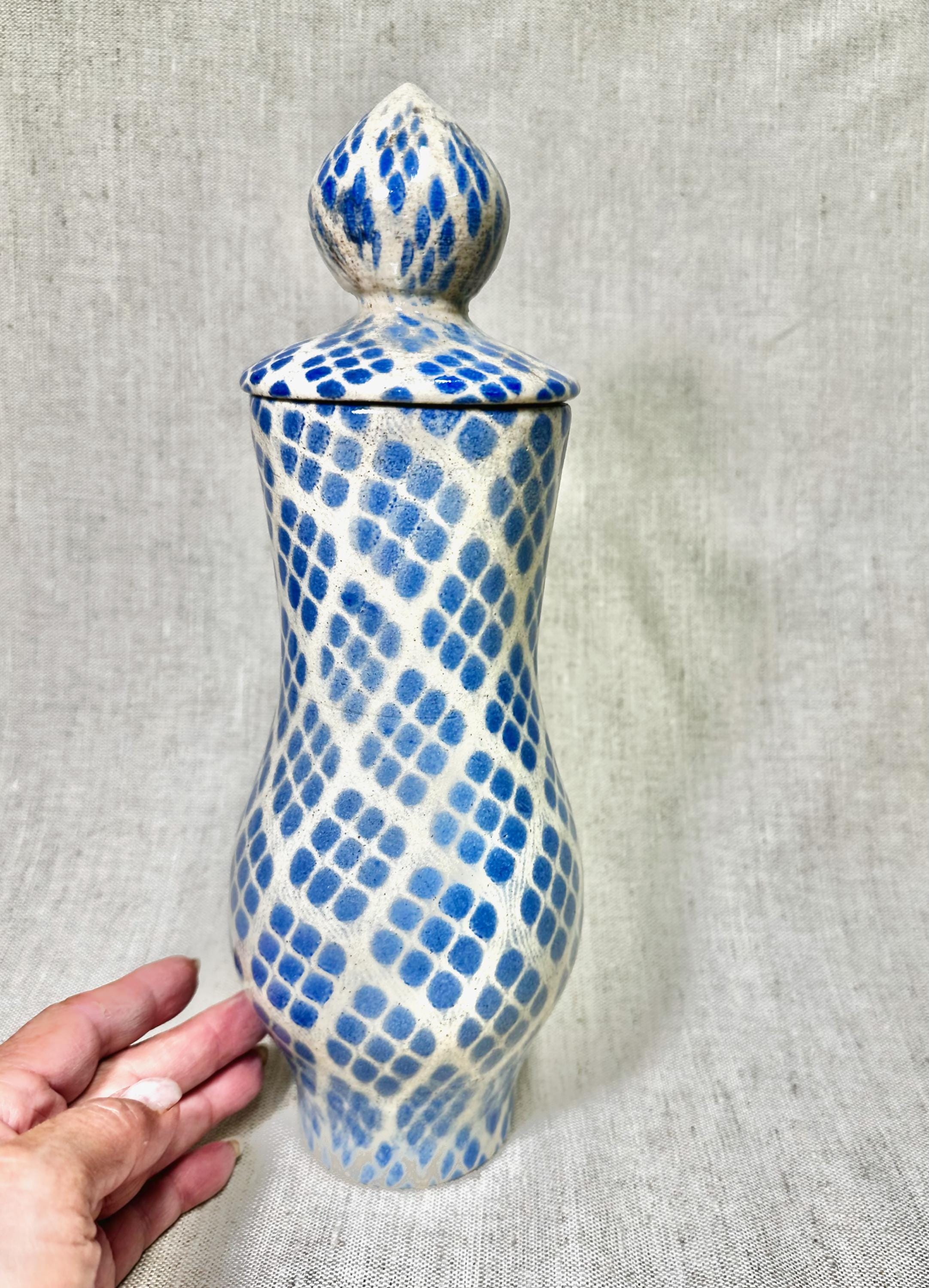 Tall ceramic Jar/Container with blue patterned glaze. Handmade ceramics beautiful accent to your home. Decorative Abstract patterned Jar|HOME DECOR