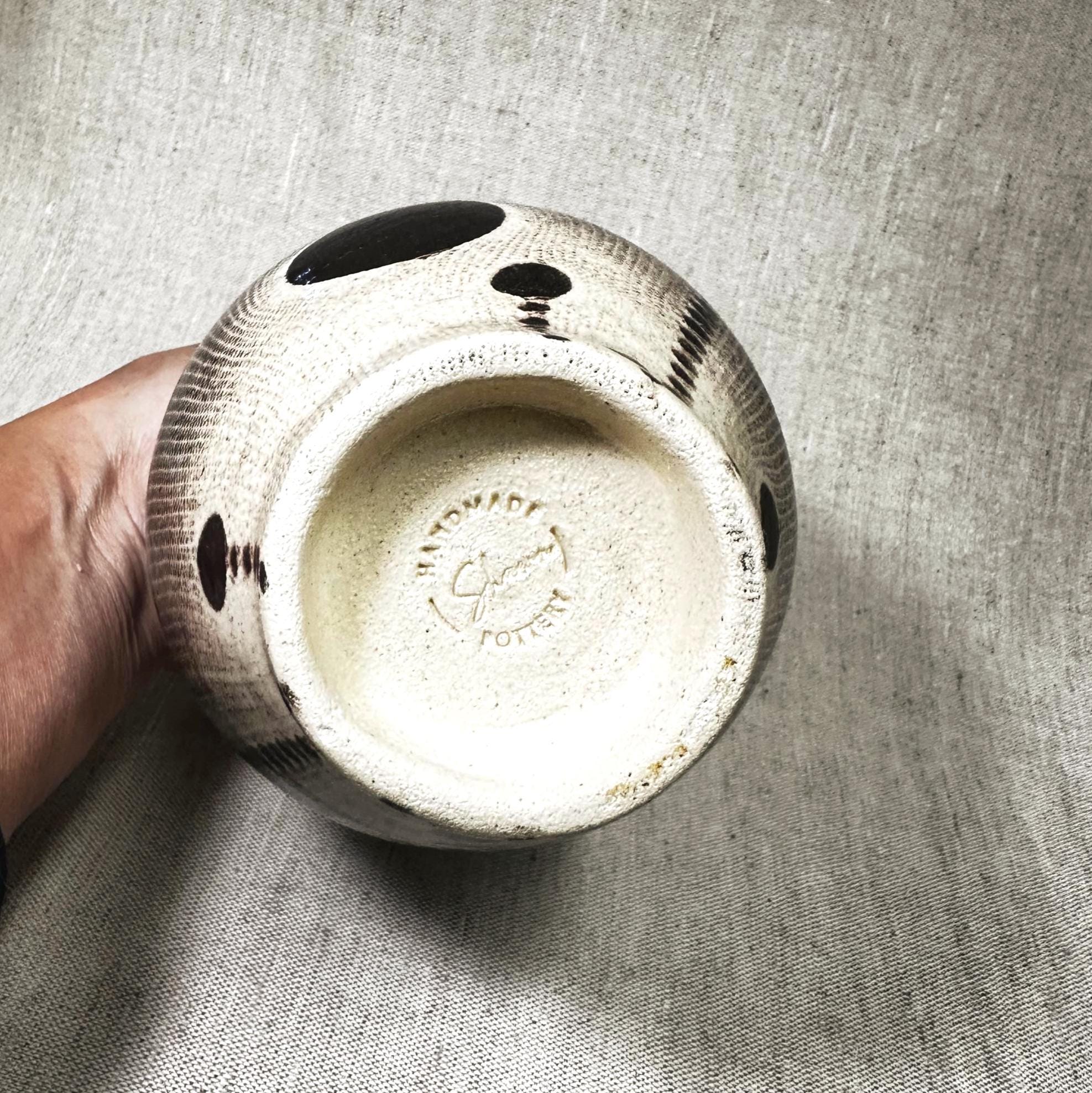 Handmade by Shawn. Dark brown brownish black glaze pattern.