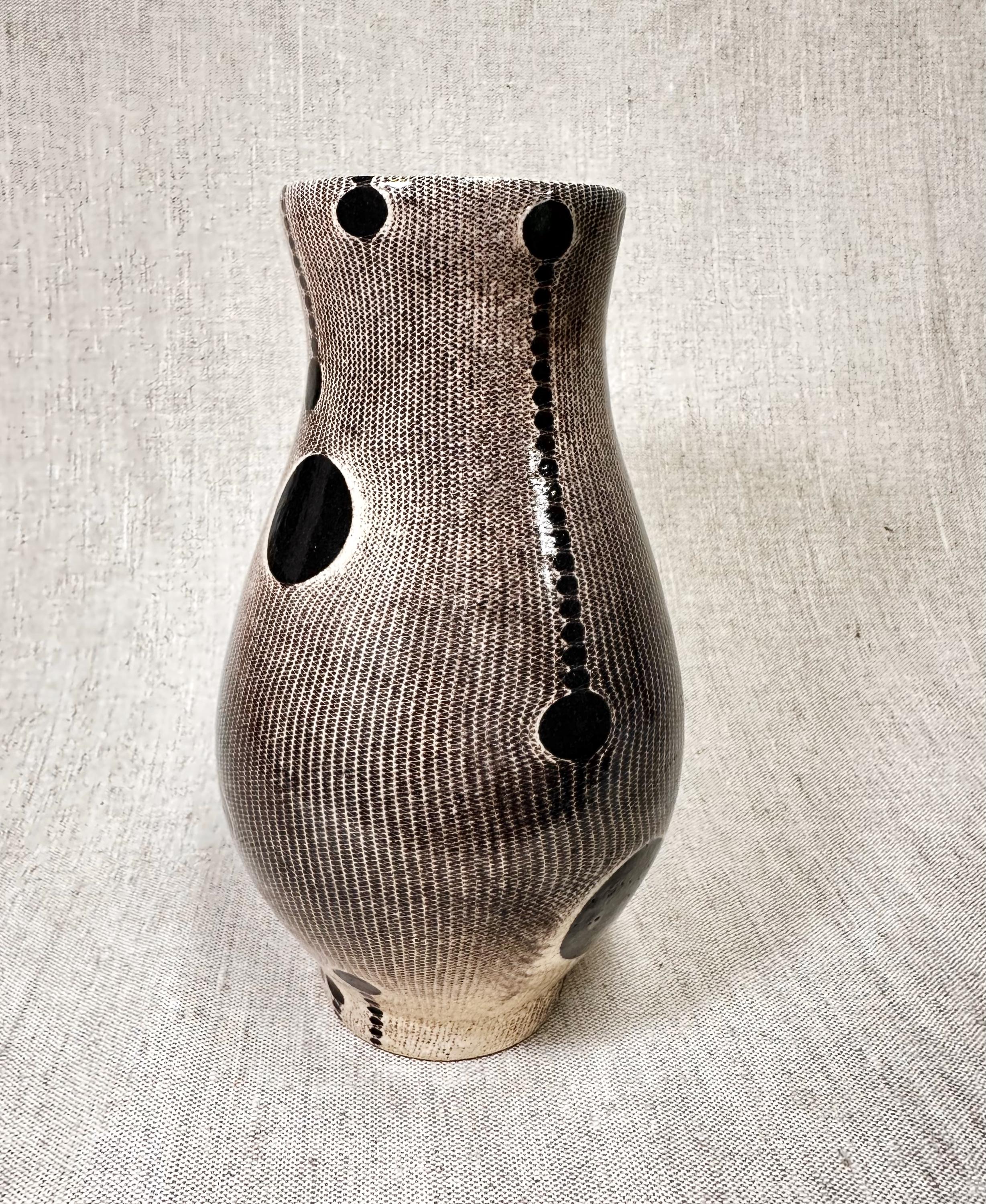 Ornate patterned glaze on a handmade ceramic Vase.